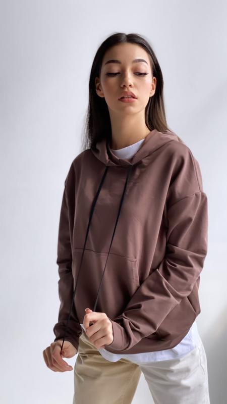 Реал —— Худи женский «Однотон» Турция Цена - 350 грн пудра Размер - 42-46 уни Ткань - двунить Турция Цвет - лило фрез чёрный мокко Особенности - свободный крой, с карманами и шнурком в капюшоне Н❤️