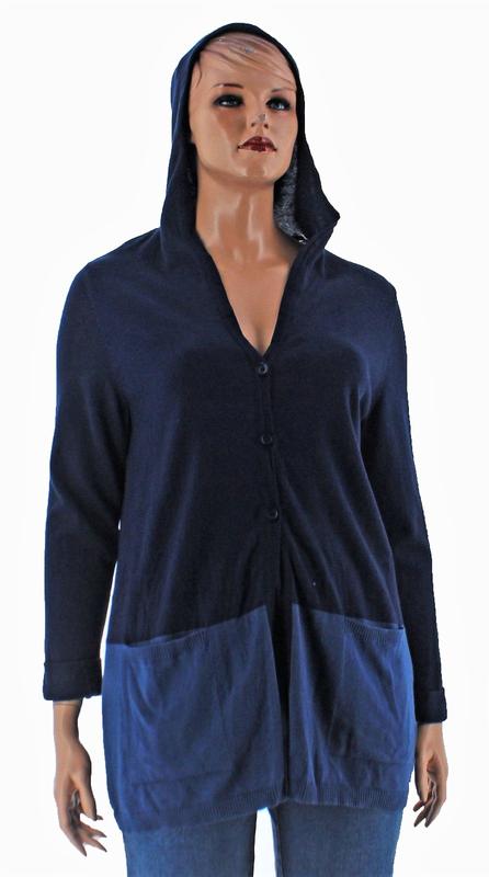 Новый, с бирками брендовый удлиненный кардиган -худи "STYLE & CO" с V-образным вырезом , длинными рукавами, скомбинированный их двух оттенков синего цвета, батал 1X, на 52-56 рр ( смотрите, пожалуйста, замеры). Худи застегивается на три пуговицы по центру переда, ниже уровня бедер расположено 2 накладных кармана. Верхняя часть кардигана-худи изготовлена из трикотажа темно-синего цвета, а низ ( 26 см) из более светлого оттенка, напоминающего светлый деним. Плечо немного занижено. Соединение 2-х цветов ниже уровня бедер , примерно на 7-11 см ( зависит от роста), что уменьшает визуальный объем в области бедер, подтягивает фигуру, делает образ более динамичным, а значит и молодым. Изделие сшито из коттоново-вискозного трикотажа и предназначено для повседневного использования. Хорошо сочетается с джинсами, брюками, лосинами и леггинсами, можно совмещать с подходящим по "жанру" платьем, платьем-футболкой., шортами, капри и юбками спортивного стиля. С помощью данного кардигана-худи, можно создать множество многослойных лукав, так как у него простая прямоугольная форма и нейтральное цветовое сочетание, которое подойдет , практически, ко всему. Замеры по изделию. Длина = 78 спинка, 82 - перед ПОГ = 54-60 см ПОТ = 54-58 см ПОБ = 53-56 см Длина рукава вместе с плечом = 80 см 1/2 обхвата рукава в области бицепса = 20-22 см Состав: 60% - cotton, 40% - rayon Доставка за счет получателя. Отправка после частичной или полной предоплаты. Обмена и возврата нет.