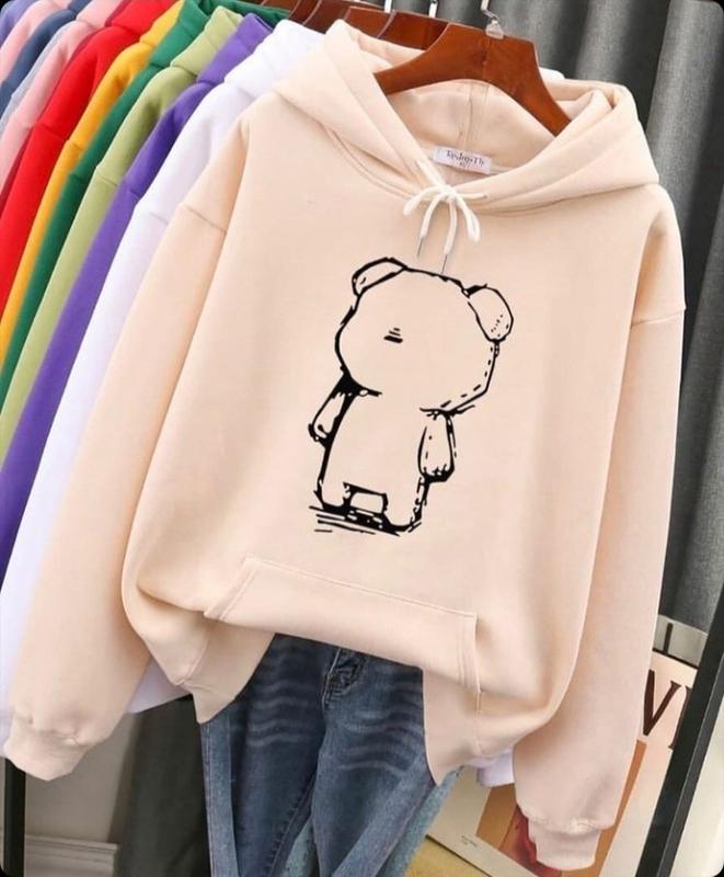 ▪Худи женский на флисе с капюшоном «Мишка» Размер - 42-46 Ткань - трехнить флис Цвет - беж розовый белый чёрный джинс сирень Женский батник с капюшоном идеально подходит для ежедневного использования, смотрится лаконично и стильно.