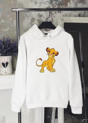Худи на флисе теплый,с капюшоном,белый с рисунком.