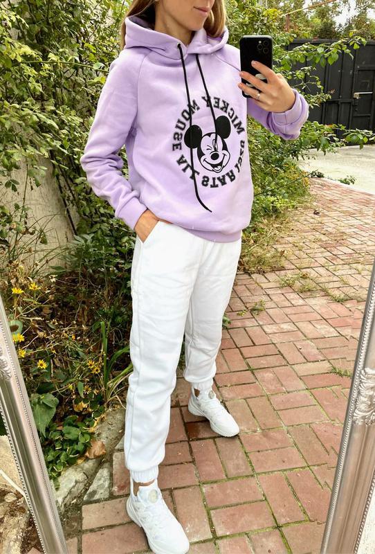 ▪️Модний зимовий худі «Міки» #87 на флісі з капюшоном Розмір 42-46 Тканина - трехнить фліс Колір - малина беж олива фрез лило Жіночий теплий худі на флісі з капюшоном яскравих кольорів. Фасон - oversize Глибокий капюшон, зручний фасон зі шнурком на люверсах. Світшот на манжетах. Яскравий стильний накат високої якості.