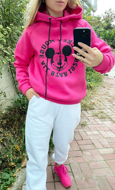 Модний зимовий худі «Міки» #87 на флісі з капюшоном Розмір 42-46 Тканина - трехнить фліс Колір - малина беж олива фрез лило Жіночий теплий худі на флісі з капюшоном яскравих кольорів. Фасон - oversize Глибокий капюшон, зручний фасон зі шнурком на люверсах. Світшот на манжетах. Яскравий стильний накат високої якості.