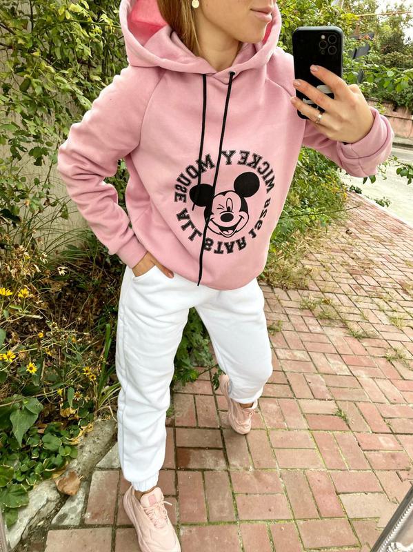 Модний зимовий худі «Міки» #87 на флісі з капюшоном Розмір 42-46 Тканина - трехнить фліс Колір - малина беж олива фрез лило Жіночий теплий худі на флісі з капюшоном яскравих кольорів. Фасон - oversize Глибокий капюшон, зручний фасон зі шнурком на люверсах. Світшот на манжетах. Яскравий стильний накат високої якості.