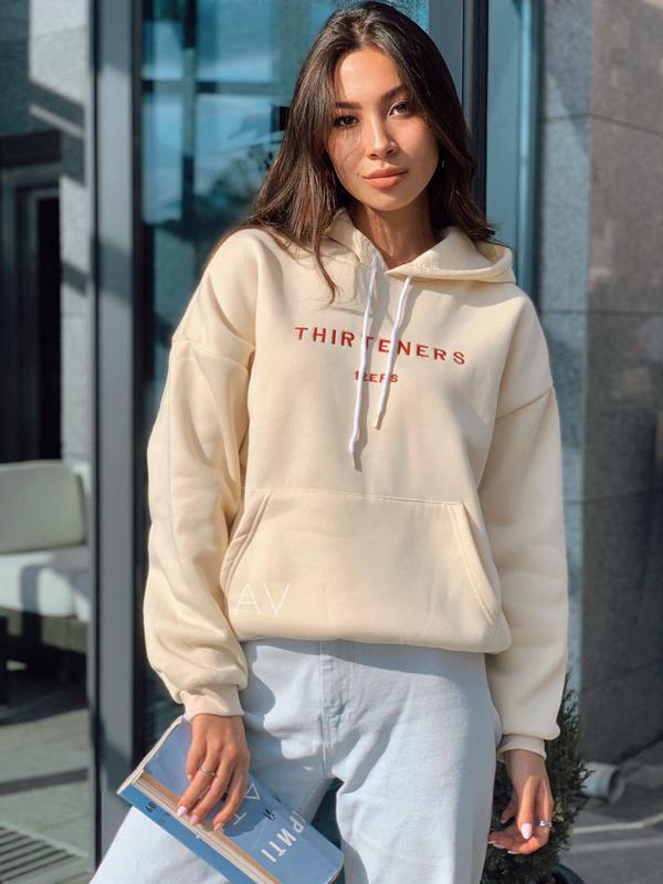 Худи на флисе с капюшоном в самых ярких цветах❣️ Мод:295 Цвет: синий,айвори,пудра Ткань: трикотаж на флисе Размер: oversize 42-46 Длина 58см