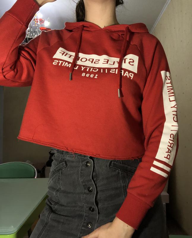 Червоне укороченое худі з написом Одягнене на розмір з Виміри на запит