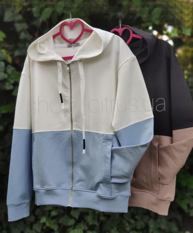 🔥🔥🔥Класична спортивна кофта олімпійка на застібці-блискавці із кишенями спереду. Рукави, низ кофти на широкій резинці. Штани джогери, низ на резинці, пояс додатково стягується шнурками. Оригінальність моделі за рахунок поєднання двох кольорів: бежевого та чорного і білого та блакитного. 🛍Колір: білий з блакитним, чорний з бежевим. 🏷 Розмір: S, М, L, ХL 🇹🇷 Виробник: Туреччина 📜 Матеріал: 90% котон, 10% лайкра, трьохнитка ✅Код 5370 ⭕Ціна 385грн 📏Заміри 🏷Розмір S(чорний/беж) 🏷Розмір S(чорний/беж) 🏷Розмір S(чорний/беж) Рукав 54 Рукав з плечем 69 Ширина в грудях 52 Довжина 61 🏷Розмір M(чорний/беж) 🏷Розмір M(чорний/беж) 🏷Розмір M (біло/блакитна) Рукав 55 Рукав з плечем 71 Ширина в грудях 53 Довжина 62 🏷Розмір L(чорний/беж)❌ПРОДАНО❌ 🏷Розмір L(чорний/беж) Рукав 56 Рукав з плечем 72 Ширина в грудях 54 Довжина 64 🏷Розмір XL(чорний/беж) 🏷Розмір ХL(чорний/беж) Рукав 57 Рукав з плечем 73 Ширина в грудях 57 Довжина 64 🚚 Доставка Новою Поштою та Укрпоштою ✔ Є наложний платіж з передоплатою 100грн (безпечна покупка з оплатою на пошті) 📸 Фото в реалі