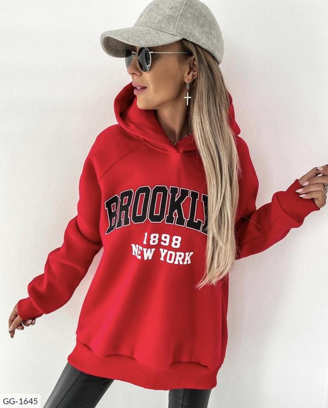 Ткань - трехнитка на флисе, качественный накат Цвета - красный и белый Крутые удлиннённые худи brooklyn, тёплые, удобные и стильные