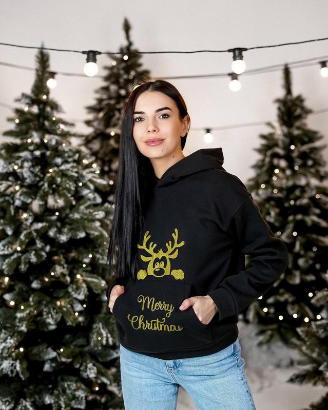 ‼️ Внимание оплата на карту‼️ ▪️Новогодний худи с капюшоном , рождественский свитшот «Олени» женский Цена - 480 грн Размер - 42-46 Ткань - трехнить флис Цвет - чёрный красный Праздничный худи женский сезон – осень/зима; материал – трехнитка (трикотаж) с флисом внутри; глубокий вшитый капюшон со шнурком; карман «кенгуру»; спущенная линия плеча, длинные рукава с манжетами; стильный рождественский принт. Смотрите также другие мои объявления
