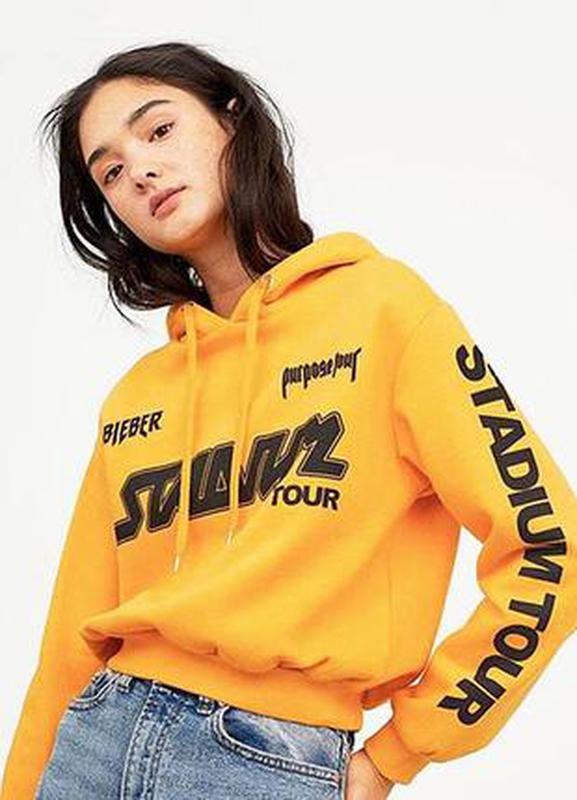 короткий худи от бренда H&M разм. ХS, S, L № ********** Мерки: ХS: плечи 40см, пог 46см, длина 49см, рукав 55см S: плечи 45см, пог 50см, длина 48см, рукав 58см L: плечи 49см, пог 61см, длина 51см, рукав 61см Короткий джемпер худи из футера с принтом и капюшоном на кулиске. Длинный рукав с заниженной линией плеча. Трикотажная резинка по низу рукава и низу джемпера. Цвет: желтый/принт Состав: 72% хлопок, 28% полиэстер; подкладка капюшона: 100% полиэстер
