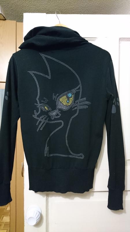 Гарна кофтинка на блискавці з капюшоном, кишені кенгуру В переди модшашка кішечки, на спинці кішечка цілком, на рукавах сліди лапок Розмір
