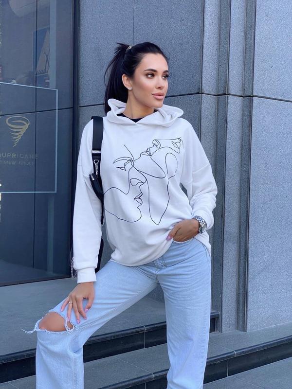 Тканина : тринитка петля Розмір: єдиний oversize Висока якість тканини, приємна до тіла Подвійний та глибокий капюшон На рукавах та знизу манжет