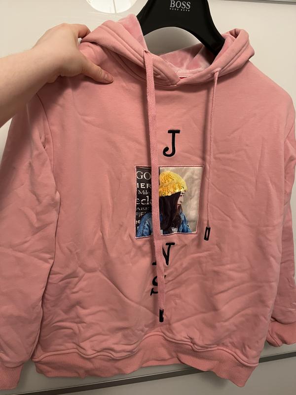 Розовое худи с капюшоном, внутри плюш, очень приятное и тёплое. Состояние идеальное, не носилось