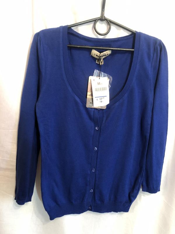 Дуже гарна кофтина на ґудзиках. Синій ,свіжий,насичений колір. Довжина 52 см. Рукав 48 см. Пог 40 см.