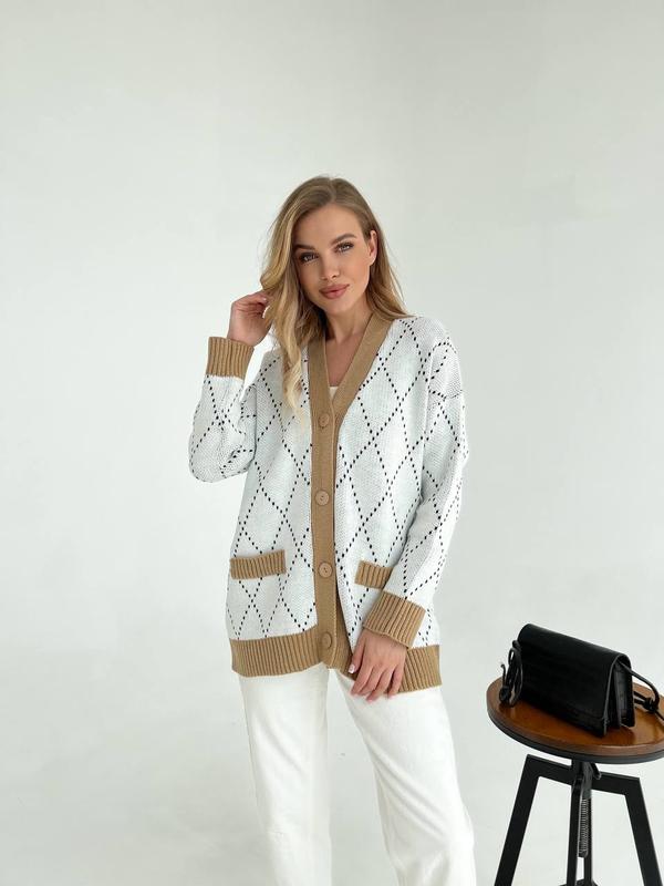 Трендовий кардиган на ґудзиках жаккардової у язки ▪️Арт. KULYA ▪️Склад: 30% Вовна, 70% акрил ▪️Кольори: Блакитний-бежевий Оливка-бежевий Розовий-сірий Молочний-чорний Кемел-чорний ▪️Розмір : 42-46 🏷 Ціна: 730 грн ___________________