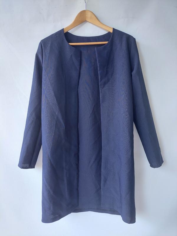 Стильний кардиган без застібок розмір С стан новий,але є дефект тканини ,заціпка,в носці не помітно,так як тканина темна,тканина габардин
