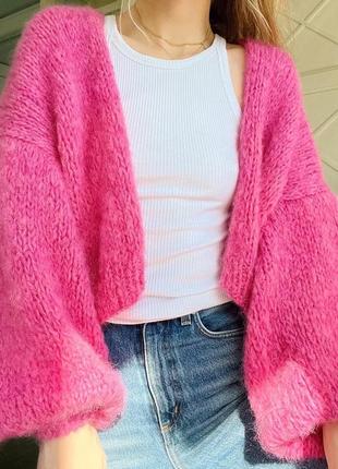 Кардиган oversize - з ним ви створите затишний та романтичний образ, водночас це незамінна та зручна річ у гардеробі. Відмінно поєднується з сукнями та джинсами з високою посадкою. Кардиган зв‘язаний вручну із вовни альпака (вона дуже м'яка і не колеться, підтримує температуру тіла, у виробах не жарко і не холодно, шерсть є гіпоалергенною, не містить ланолін). Інструкція з догляду: ручне прання в теплій воді з рідким засобом, не віджимати і не сушити в пральній машині, не викручувати при ручному віджимі. Сушити у розкладеному вигляді на горизонтальній поверхні.