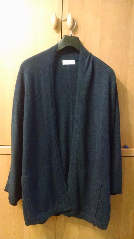 Очень красивый, теплый, легкий кардиган, с карманами,кажан, по низу прорези для рук,цвет т. синий, сетчатый от до л