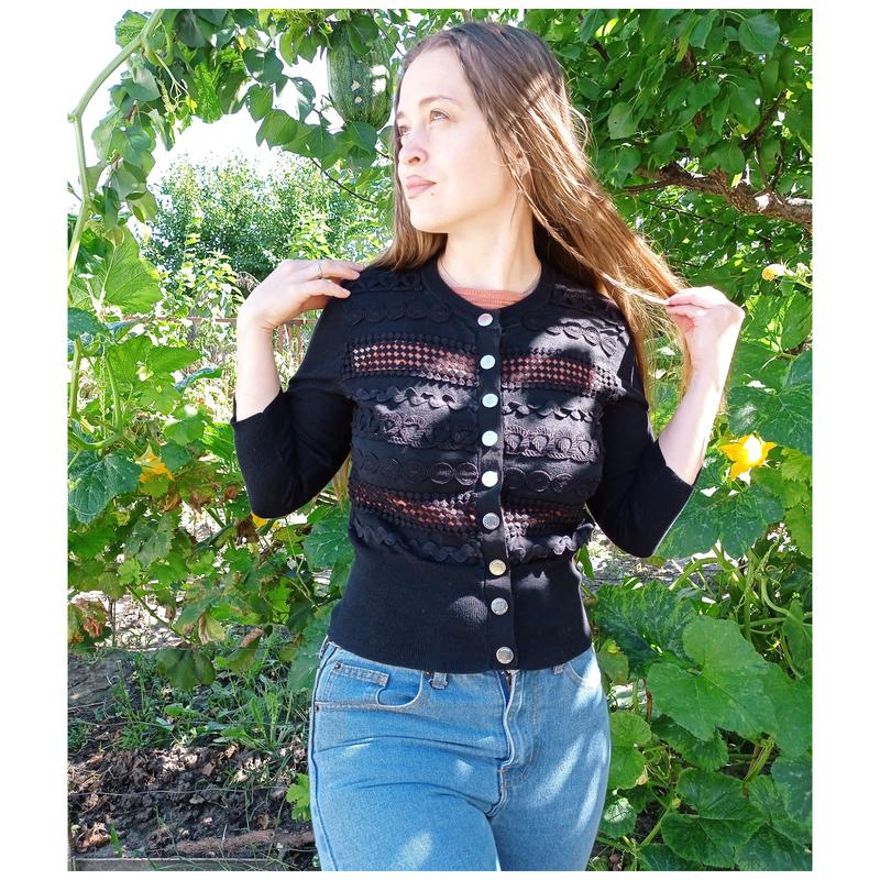 Пропоную Вашій увазі чорну бавовняну кофтинку з цікавим передом. Бренд солідний Karen Millen. Розмір вказано 3, це по сітці бренду 12 тобто М. Одягнено на мені на параметри 88-67-96 Рукав четвертний. Дуже ефектно буде виглядати на голе тіло, там дві сіточки, буде дуже пікантно ,але не визиваюче. Стан чудовий. ЗАМІРИ надам за запитом. Відсилаю Укрпоштою і Новою поштою примірка накладним платежем з передплатою або безпечною оплатою від шафи.