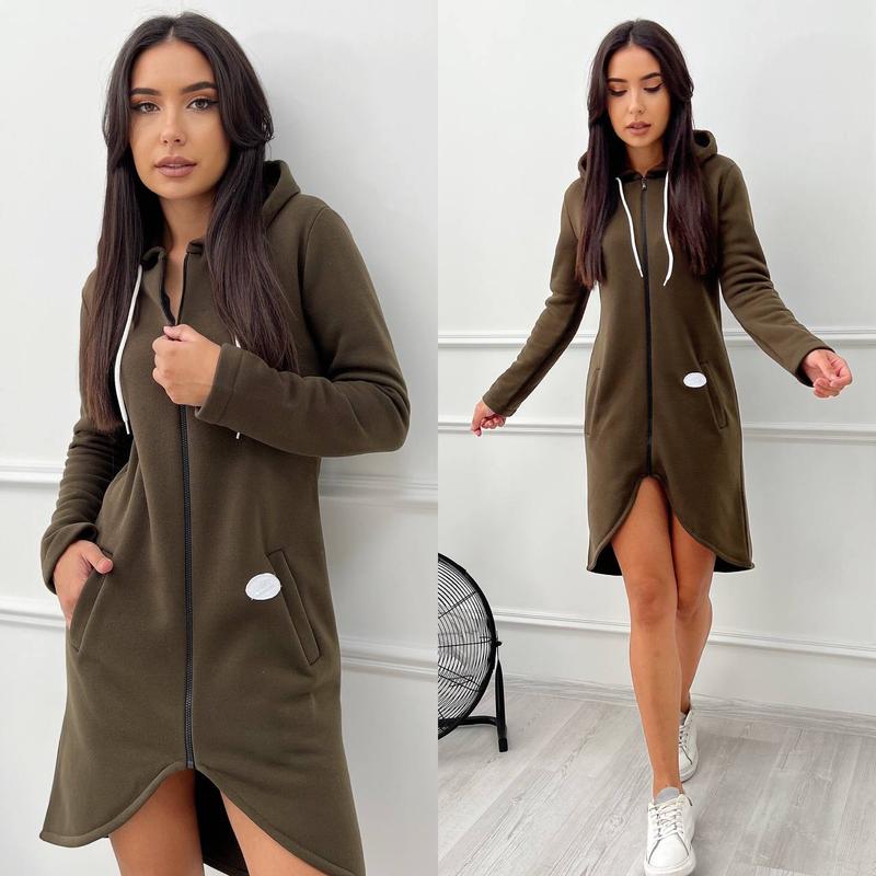 😍Крута новинка 😍 Модель 181 Тканина: тринитка на флісі Розміри: 42-44,46-48,50-52 Кольори: баклажан, хакі, чорний З боковими робочими кишенями, стильна аплікація біля кишені 🥰