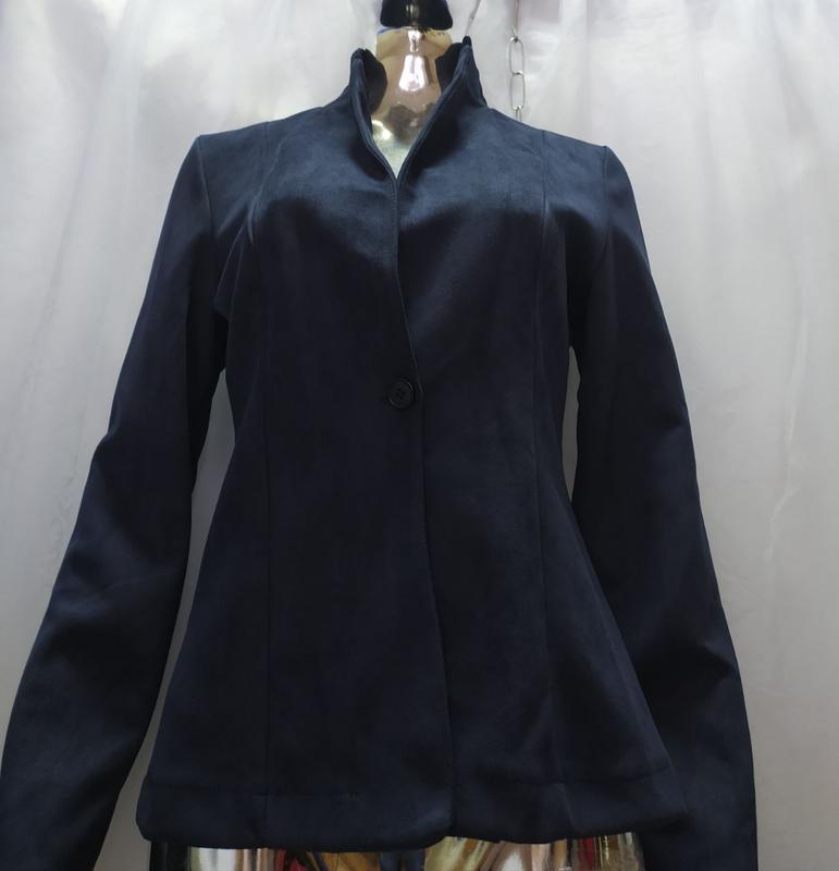Б/н0193 Жіночий жакет приталений На одному гудзику Колір синій, темний Розмір с