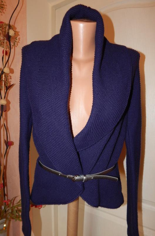 Трикотажный кардиган с интересным фасоном, платочное вязание по кругу под пояс. ПОГ 50-56см.