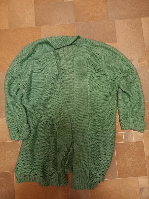 Вязаный кардиган бирюзового цвета, без пуговиц и карманов, рукав средний ПОГ-43 ПОТ-42 Низ-43 Плечи-42 Рукава-39 Длина-62