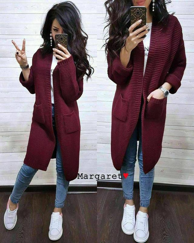 Кардиган Маргарет Машинна в'язка 50% вовна, 50% акрил Довжина 110 см Розмір єдиний 42-46 Колір блакитний, пудра, темно-синій, сірий, молоко, бордо, фуксія