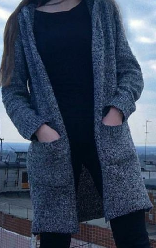 Кардиган, розмір s, сірого кольору, склад 65% катон, 35% поліестер, на фото одягнено на розмір s, на останніх двох фото кишеня та манжет, річ б/у