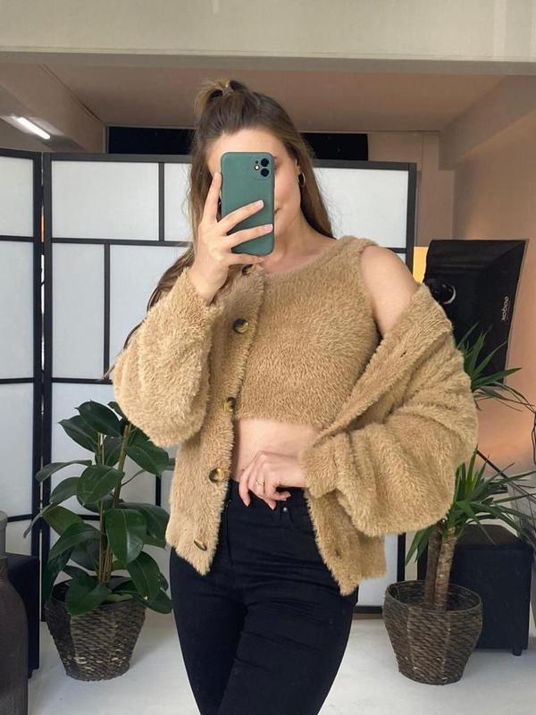 👆Ангоровий комплект двійка Топ+Кардиган ( есть дополнительные фото в реальности по запросу ) Розмір універсальний 40/48 Кольори : беж, чорний, малина, лаванда. Щільний. Приємнийй ло тіла Країна виробник Туреччина 🇹🇷