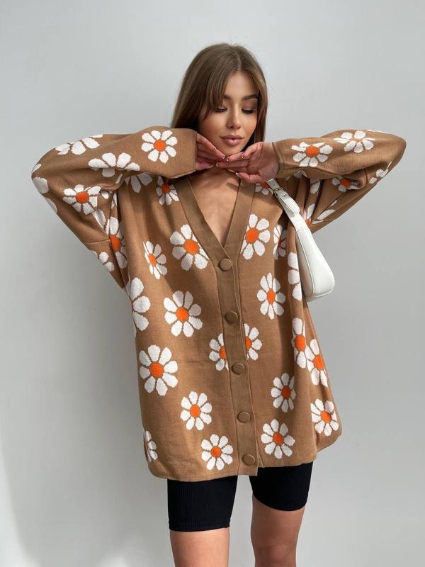#Кардиган з ромашками🌸 Мод:991 ans Колір: бежевий і рожевий Розмір: універсал Туреччина 💸Ціна 850 грн