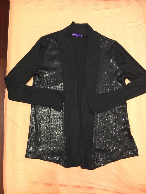 Базовая накидка /кардиган с пайетками, одела всего раз. Состояние идеальное . Размер хс-с. Ткань тянется