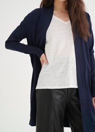 П: Стильний, приємний до тіла кардиган, середньої довжини в синьому кольорі. Розмір XXS-S. Всі речі нові та з оригінальними бірками. Додаткові фото, фото на собі та заміри скинемо у приватні повідомлення.