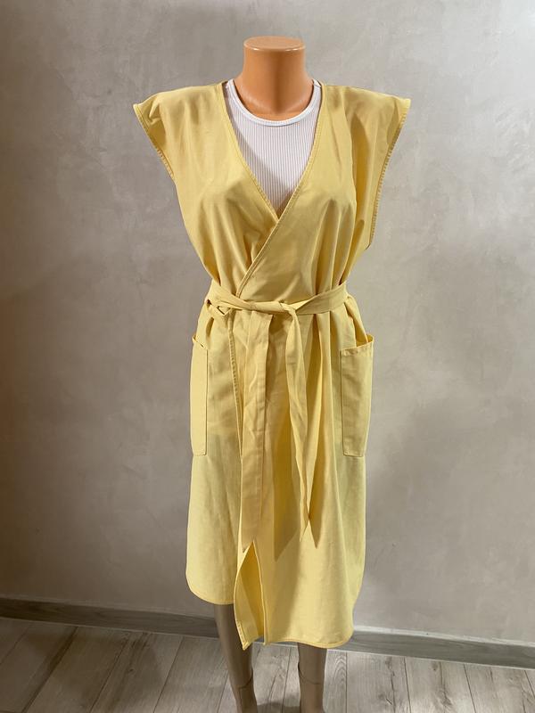 Фото на тілі нема Фото на маникені Є кишені Є пояс Фасон вільній по фігурі Не тягнеся Щільність середня Підійде на с м л європейський оріентуйтесь по замірам З нюансів біля плеча спереду незначні плями у ціні враховано Довжина 99 см) Плечі 47,5 см) Пог 50 см) Пот 49 см) Поб 50 см) Знизу 48 см)
