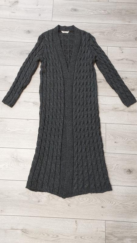 Долгий теплий кардиган крупної в'язки без ґудзиків. Одягався пару разів.В ідеальному стані.На зріст 171см нижче колін.