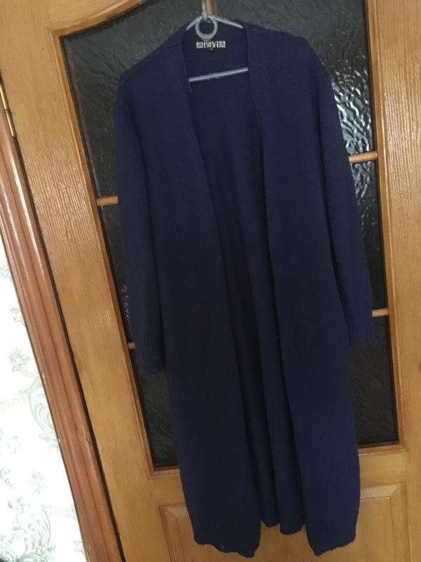 темно синий с люриксовой ниткой кардиган с карманами , без застежек , замеры на фото ,состояние хорошее есть катышки при желании можно почистить полиэстер , мохер, ткань тянется