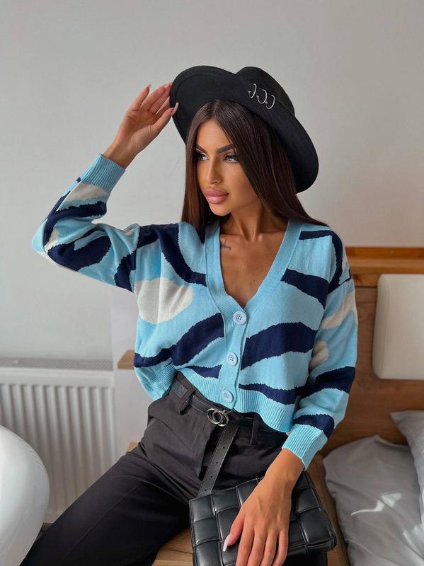 Трендові кроп кардигани на ґудзиках в трендовому принті блакитні, бежеві Виробник Туреччина Висока якість Розмір єдиний 42-46, довжина 50см, довжина рукава 60см Арт.047 ви