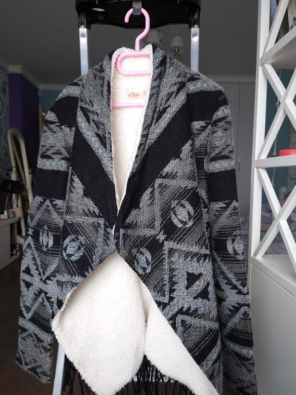 Кардіган утепленний штучним хутром. Дуже теплий , легкий. Довжина 60 см, рукав 62 см, плечі 38 см.
