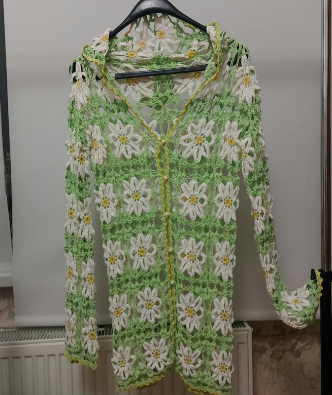летний ажурный кардиган , на пуговицах , длина изделия 82 см. , длина рукава 58 см ПОГ 46см.