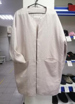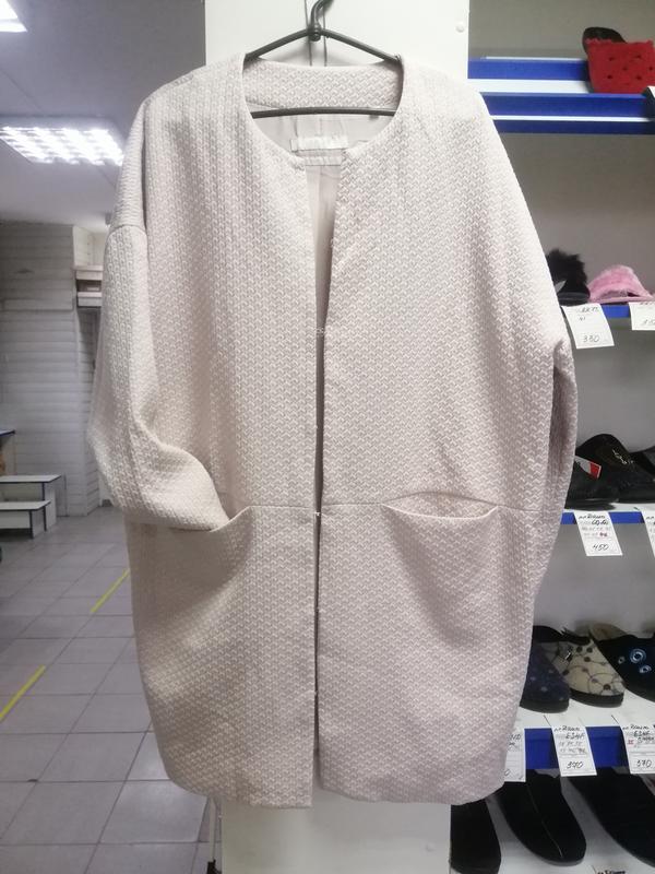 Стильний жіночий кардиган. Гарна якість тканини. Є кишені і підклада. Заміри вказала на фото. Довжина рукава від горловини. Защіпається гачками. Красивий пудровий колір.