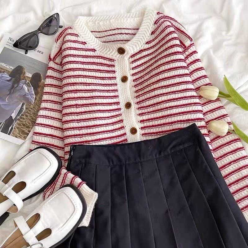 Затишний кардиган в смужку💓 Мод:1018 Розмір: универсал 42-44 Колір: чорний, червоний, бежевий Тканина: вовна+акрил Плотний та теплий😍 Ціна опт 550 грн