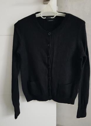 Базовий кашеміровий кардиган з карманчиками і бежевими смужками по краям Загал довж 56 довж рукава 61 см