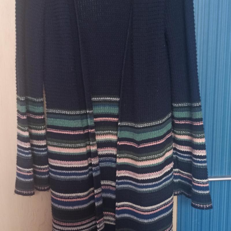 довгий в'язаний кардиган в смужку. колір темно-синій