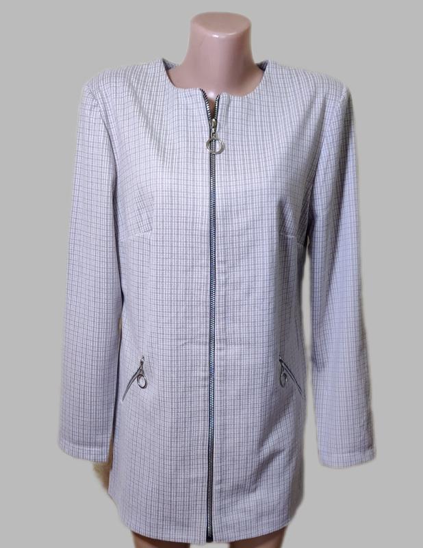 Кардиган классика приталенного силуэта .Модель без подкладки, выполнена на застежке молнии. Рукав длинный. Ткань пальтовая мягкая, теплая .Расцветка бежевая в мелкую клеточку. - Арт. 33 - Размер 50,52