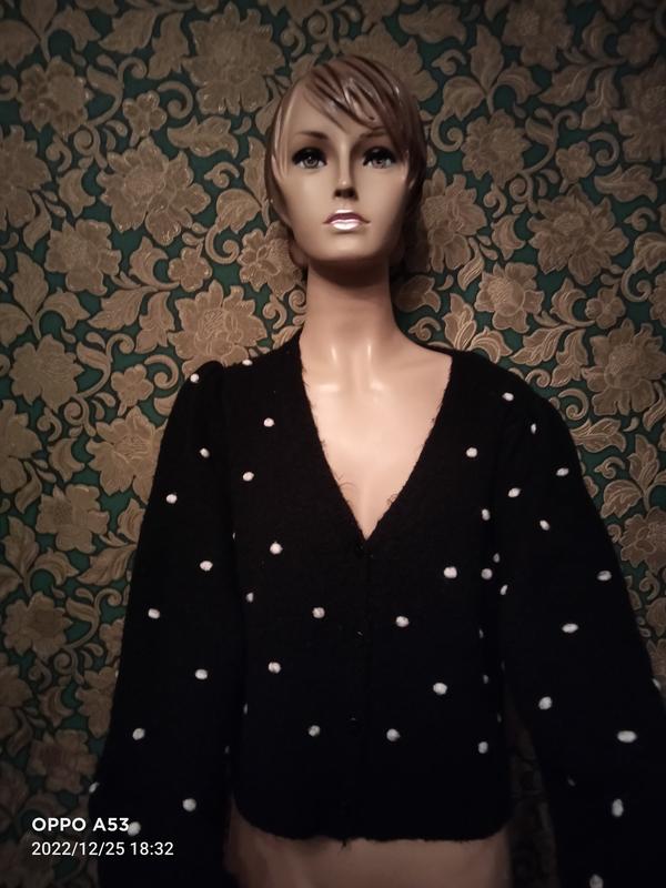 М'який,глибокий чорний колір,горошини валяна вовна,укорочений,красиві широкі рукава.ПОГ 47 Д 49