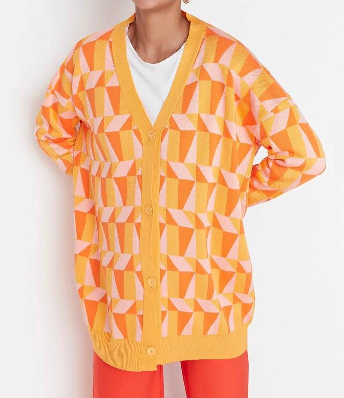 Нова колекція 💛💗❤️🤍 Трендові яскраві кардигани оверсайз, подовжені🤩⭐️ Дуже гарна якість, люкс🔥 Розмір єдиний 42-46, довжина 80см, ширина 62см, рукав 73см А033