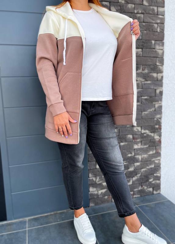 В НАЯВНОСТІ 📣📣 📣 Кардиган Ткань трехнитка на флисе Цвет мокко Размер 48-50 Цена 550 грн Кардиган с капюшоном и двумя карманами, застегивается на молнию