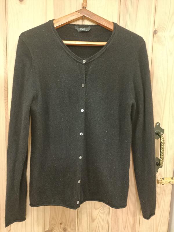 кашемировая кофта на пуговицах.пухнаста, мягкая,темно черного цвета.
