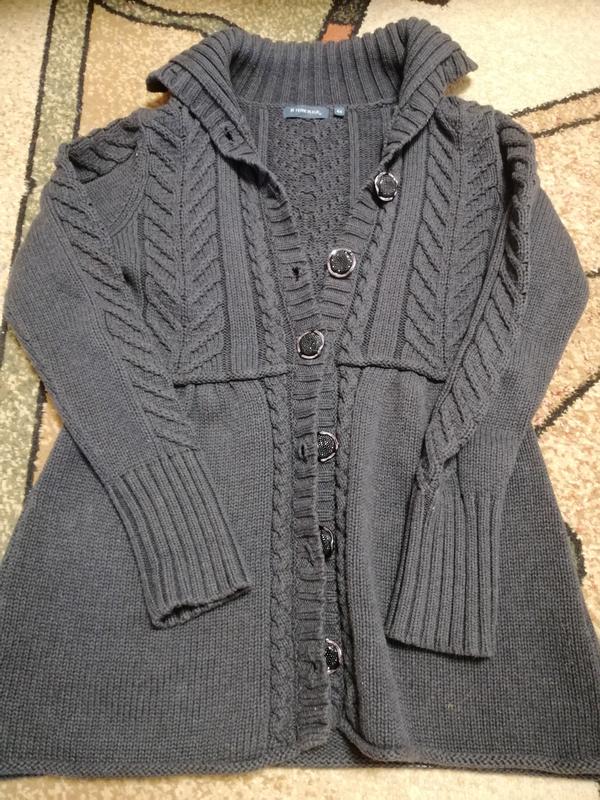 Кофта,туника, элегантного серого цвета, с яркими блестящими пуговицами.Красива вязка. Длина изделия 70 см, ширина от проймы до проймы 45 см.