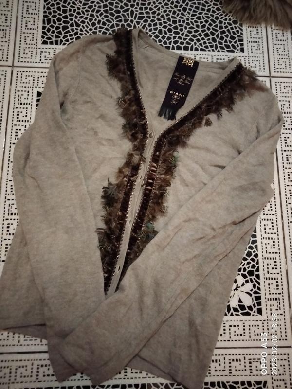 Тоненький, теплий,декорованим натуральними пір'їнками темного шоколаду,гудзики атласніпог 44 Д 55