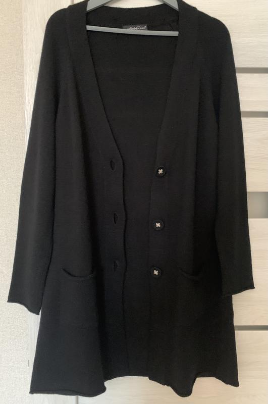 Чудовий, неімовірний, мягенький, дуже якісний кардиган на ґудзиках в ідеальному стані. Вовна мериноса, віскоза та кашемір. Колір насичений чорний. Розмір вказан 44. Пог-53-58, довжина -86, рукав-70. Питайте…